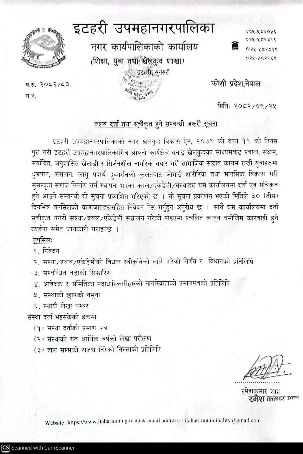 क्लब दर्ता तथा सुचिकृत हुने सम्बन्धि सूचना(२०८२-०९-२५) !!!