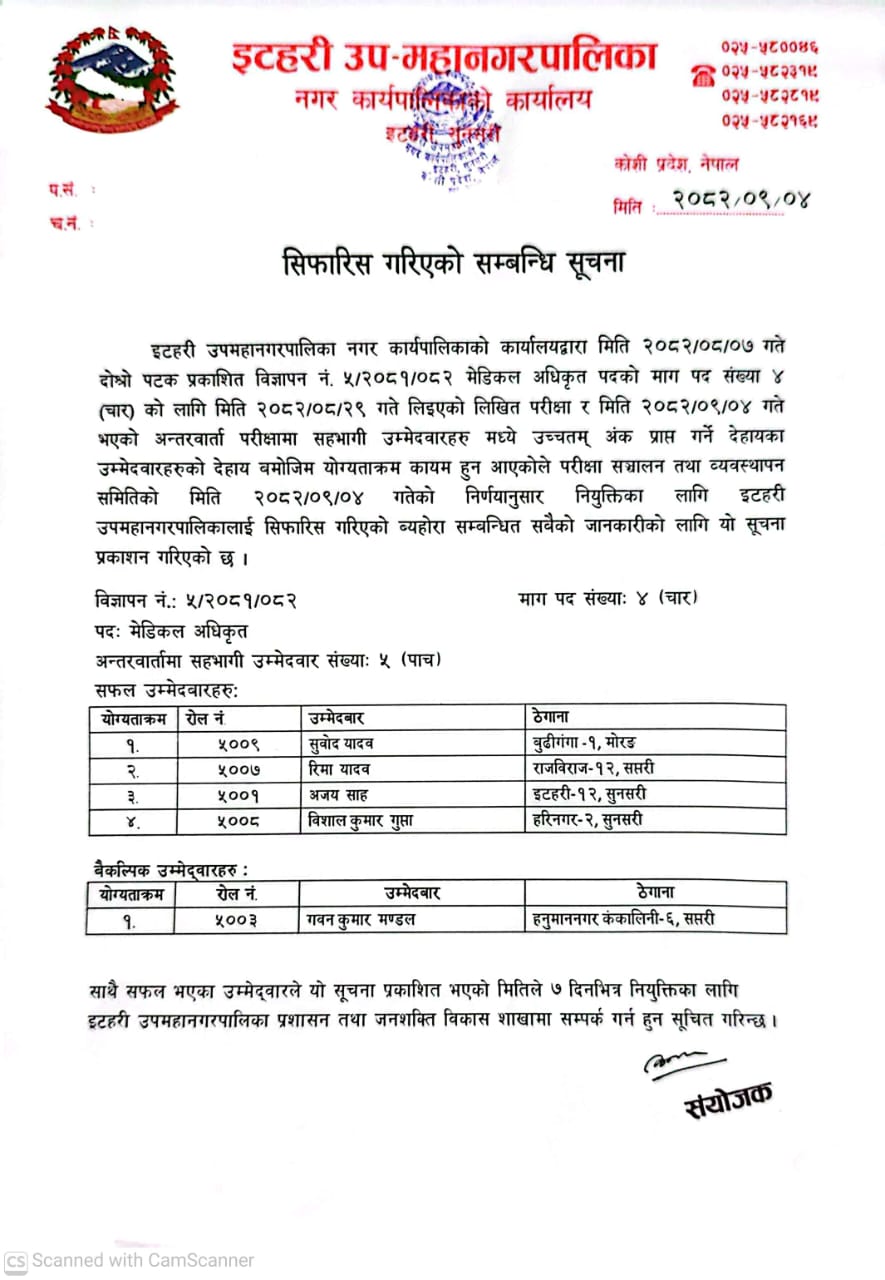 » सिफारिस गरिएको सम्बन्धि सूचना (मेडिकल अधिकृत - २०८२-०९-०४)