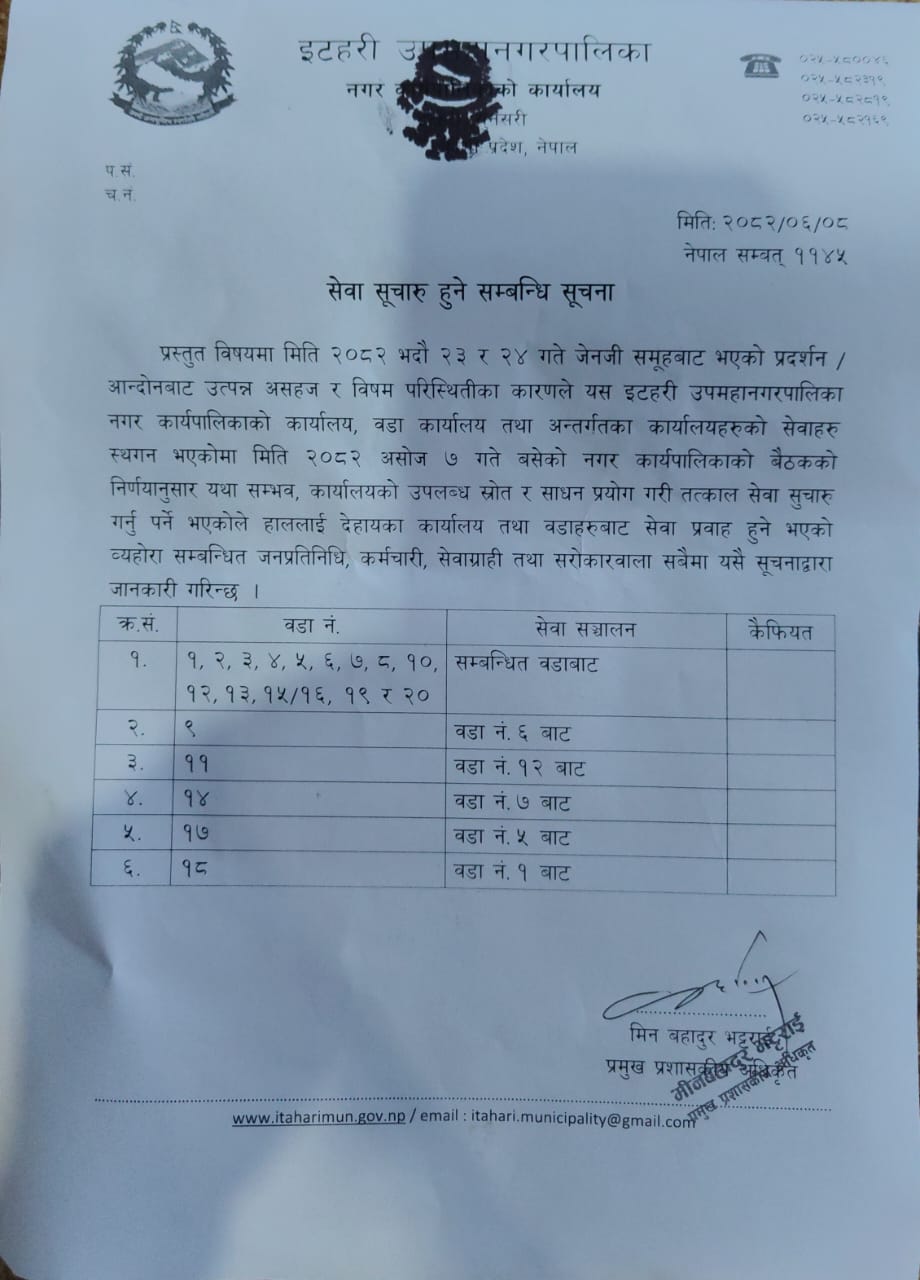 सेवा सूचारु हुने सम्बन्धि सूचना