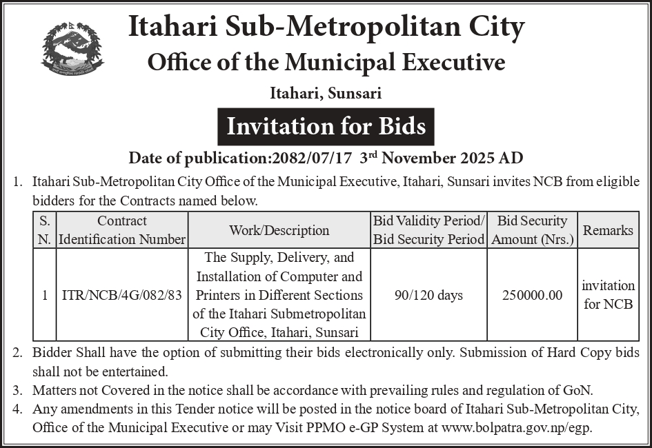 » Invitation of Bids (Supply of Computer and Printer -2082-07 -17)