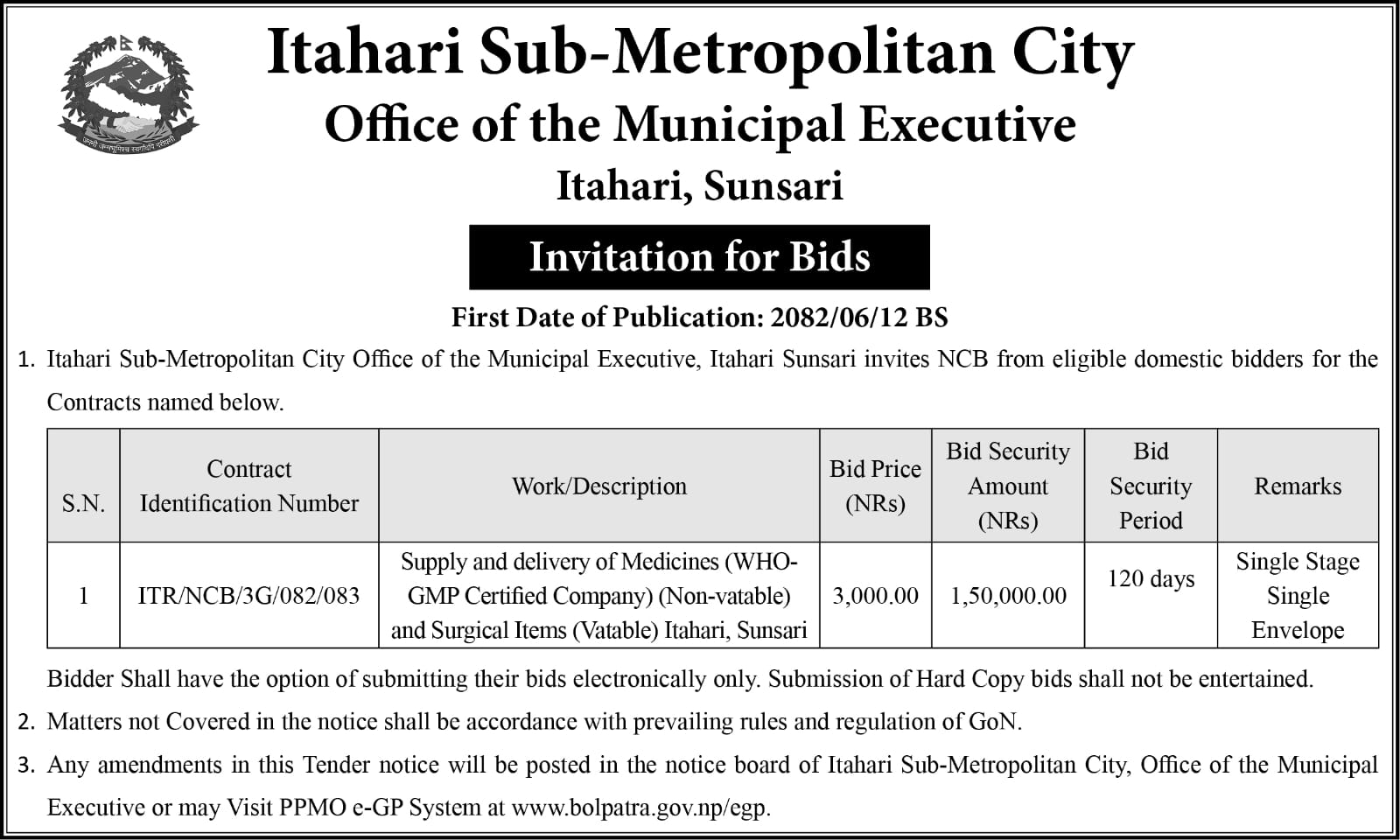 बोलपत्र आव्हान सम्बन्धि सूचना (२०८२-०६-१२)