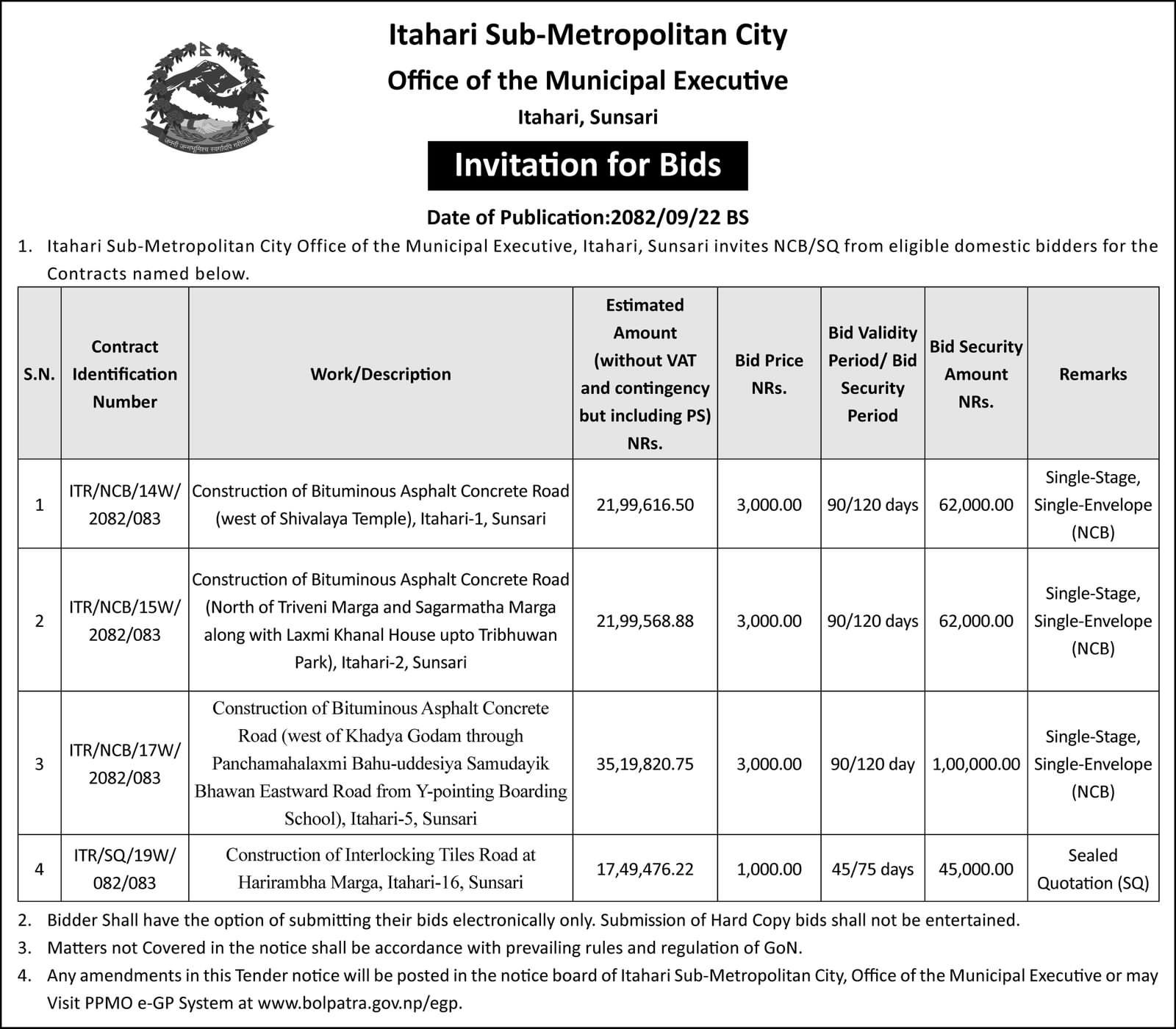 Invitation For Bids (2082/09/22)