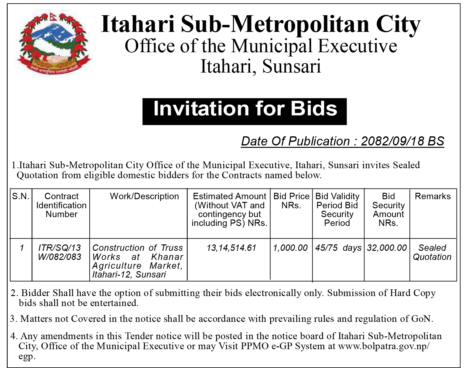 बोलपत्र स्वीकृत गर्ने आशयको सूचना (२०८२-११-१२)