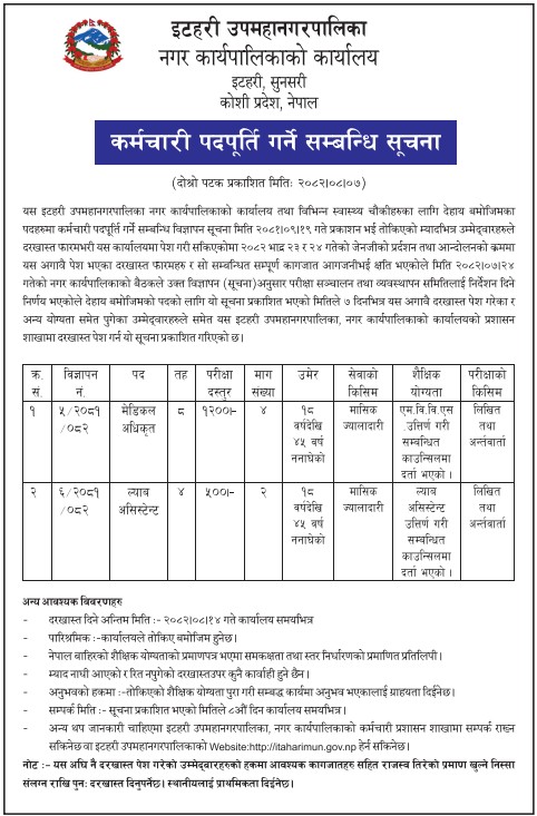 कर्मचारी पदपूर्ति गर्ने सम्बन्धी सूचना (२०८२।०८।०७)