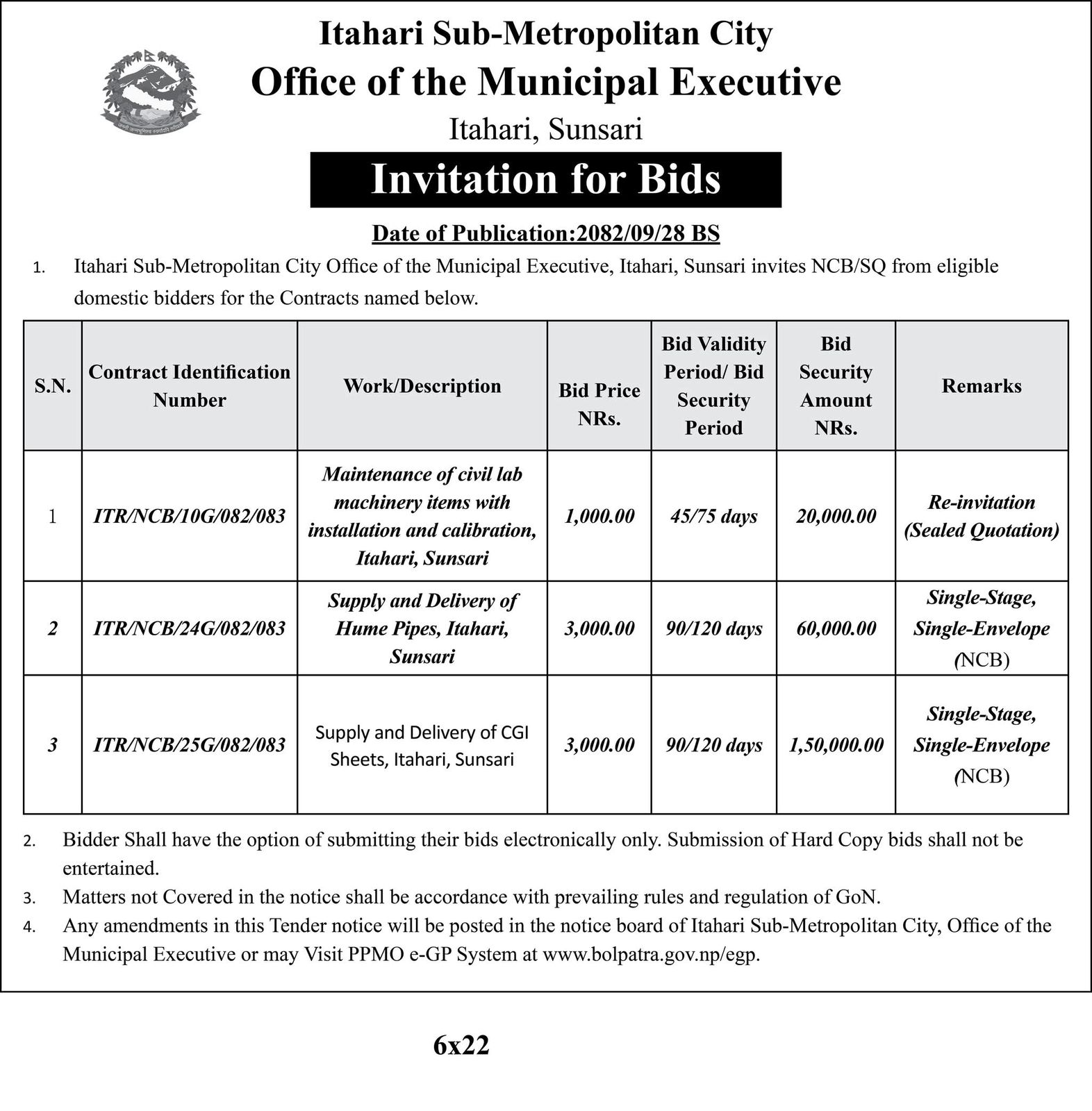 Invitation For Bids (2082/09/22)