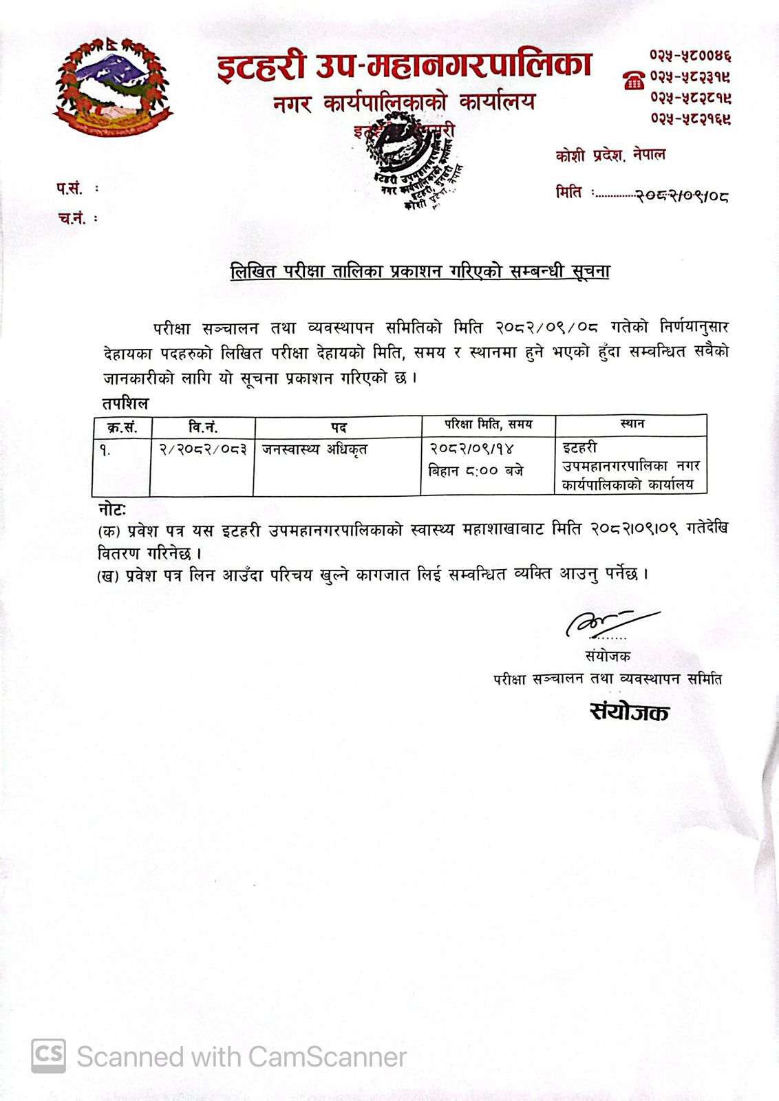 लिखित परीक्षा तालिका प्रकाशन गरिएको सम्बन्धी सूचना (जनस्वास्थ्य अधिकृत - २०८२।०९।०८)