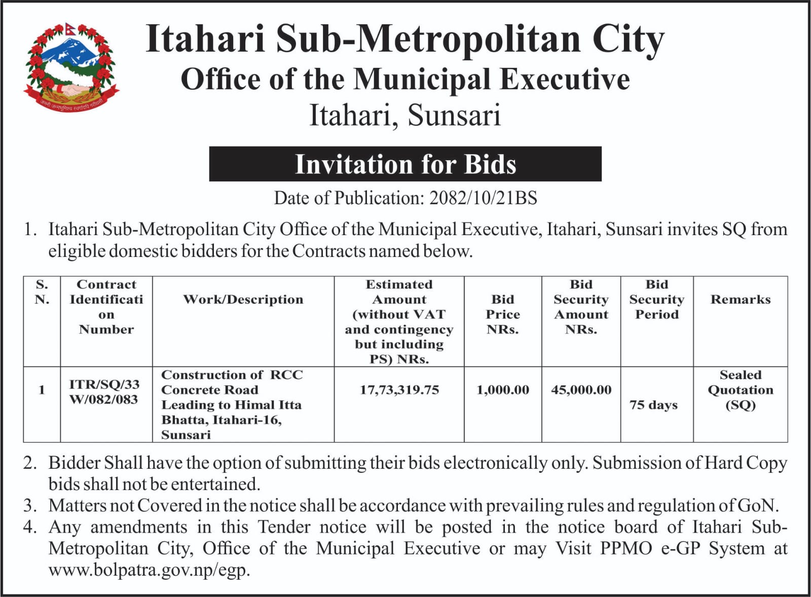 Invitation For Bids (2082-10-21)